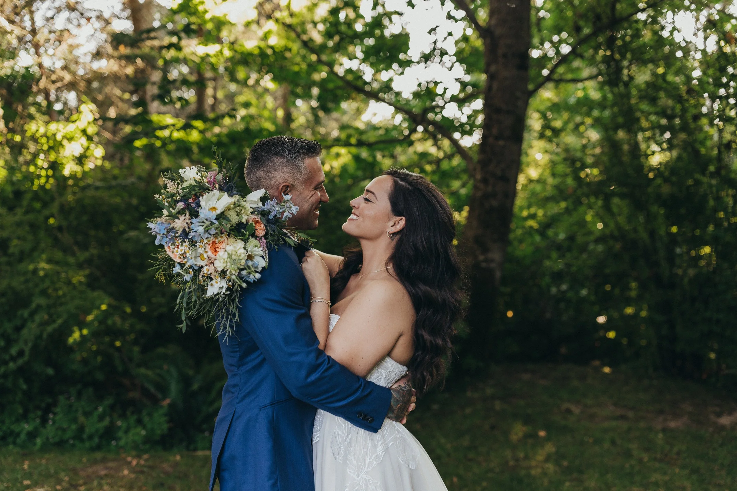 The Finery is an outdoor sanctuary tucked away on the northwest side of Camano Island, Washington. Known as "the easy island" for its convenient bridge access, Camano offers all the charm of an island escape without the disconnection of a ferry—you're away from the noise, but not from what matters. Nestled on five private acres surrounded by towering evergreens and manicured grounds, The Finery provides a serene and secluded setting where the outside world fades away. It's the perfect outdoor space to host your celebration—one where you can disconnect from distraction and be fully present, fully immersed in the joy of your most meaningful moments.